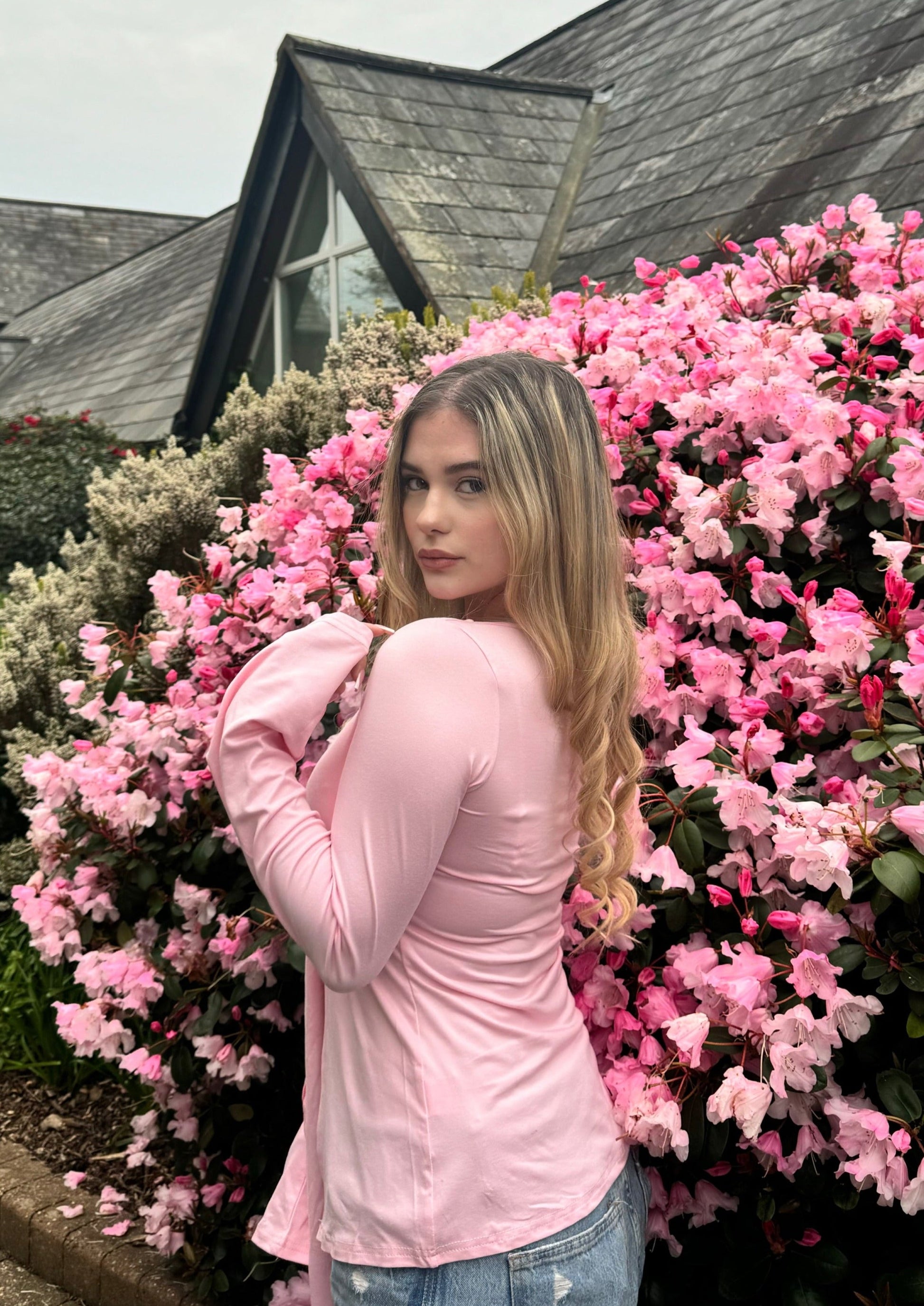 Estella Tie Front Long Sleeve Top - Baby Pink