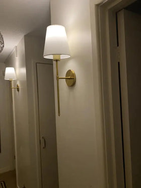 Gestalten Sie Ihr Zuhause frei mit unseren luxuriösen Wandleuchten. Das klassische Schwarz-Gold-Finish in Kombination mit einem eleganten weißen Stoffstab und Lampenschirm fügt sich nahtlos in jeden Einrichtungsstil ein.
