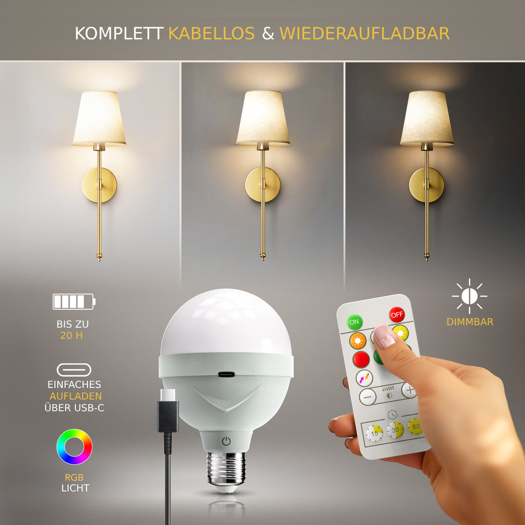 Glühbirnentyp: Wiederaufladbare LED-Glühbirne mit Fernbedienung